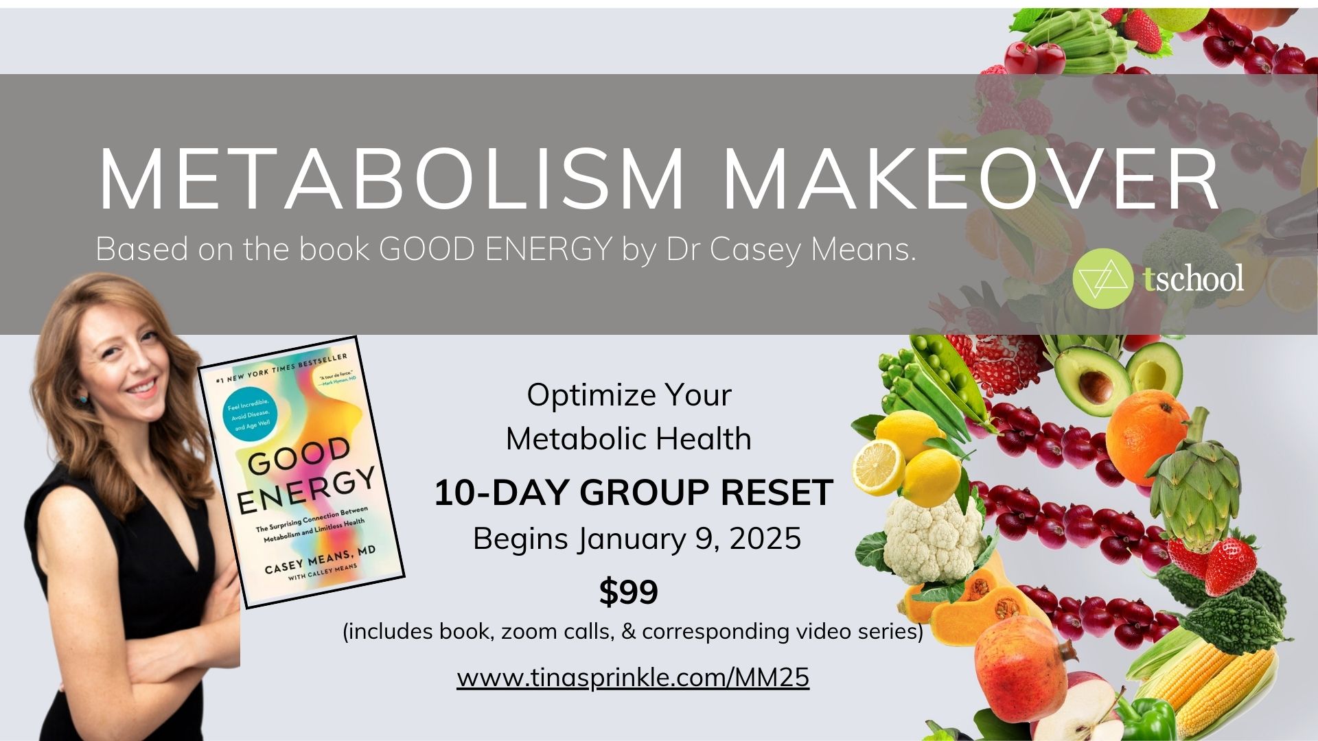 Join me for 10-Day Metabolism Makeover based on the book GOOD ENERGY by Dr. Casey Means beginning Thursday, January 9th, 2025.