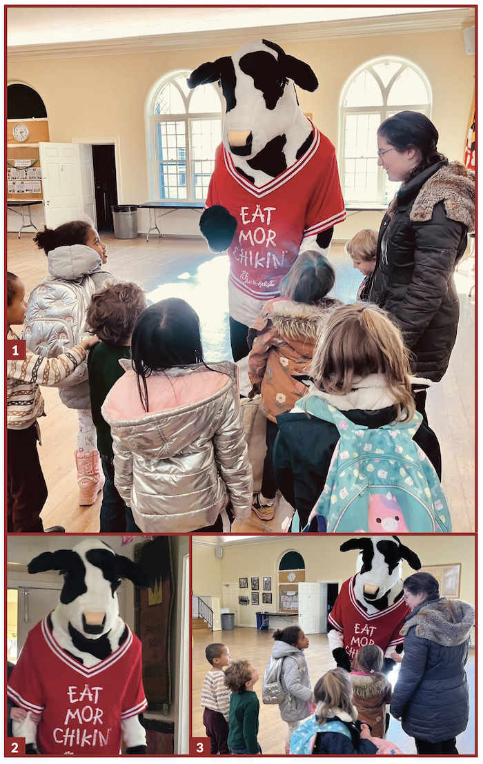 1-3 | On Thursday, St. Thomas’ Preschool and Kindergarten had a special visitor—the Cow from Chick-fil-A—to remind everyone to “Eat more Chicken” for dinner that night, which was St. Thomas’ Spirit Night at Chick-Fil-A in Owings Mills Square. Proceeds from the purchases went to support our amazing school! Thank you to all who participated.